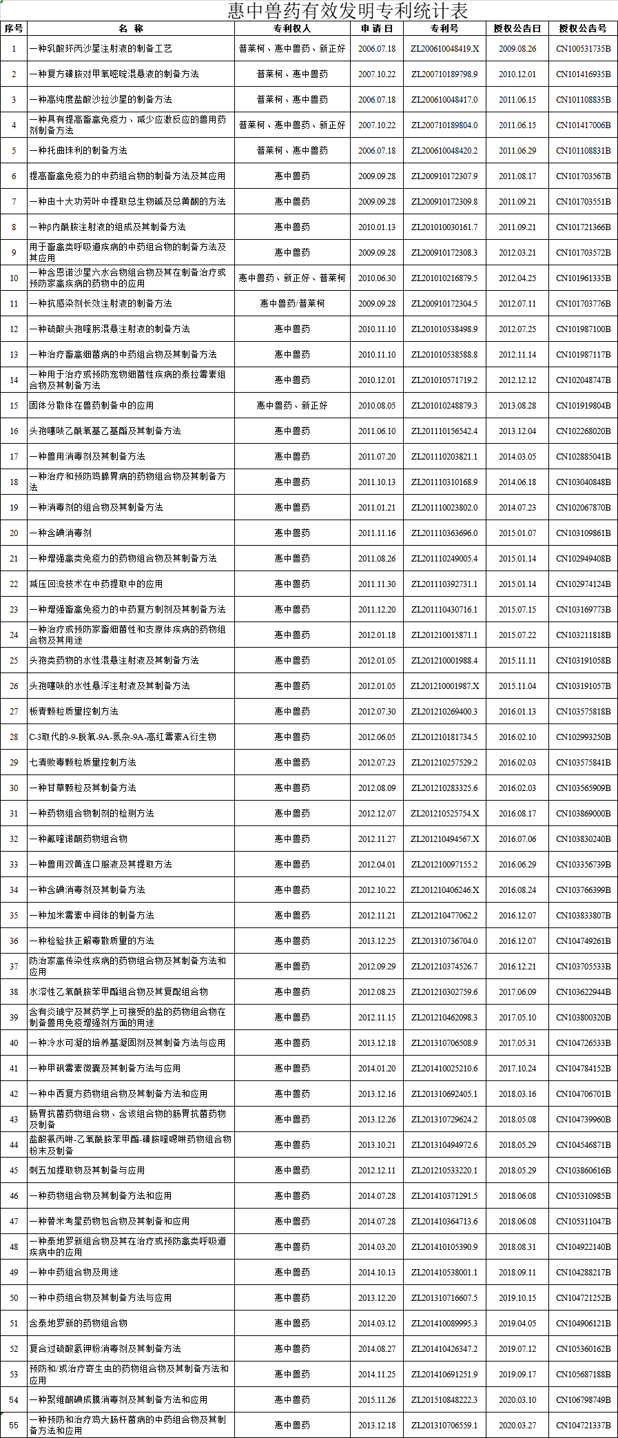 公司共獲得18項國家級新獸藥證書,獲得53項國家授權發明專利。